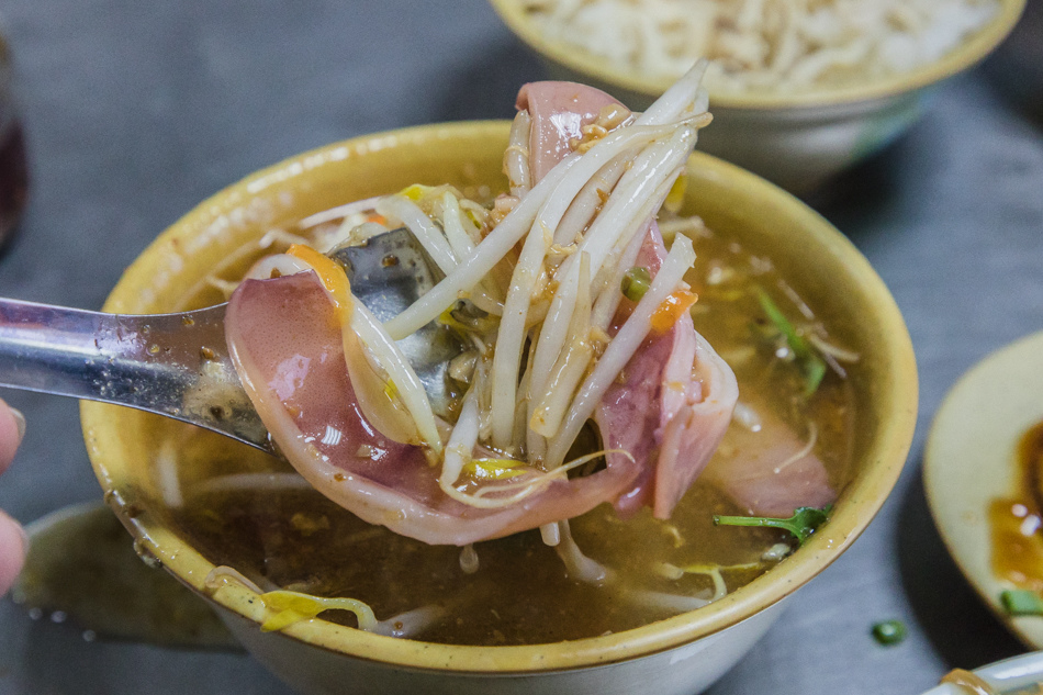▲魷魚羹湯(70元),羹湯的芶芡感不會太重,一樣帶著甜味跟柴魚香氣,魷魚隨著一把豆芽菜稍微川燙一點上桌,伴著一點點的沙茶香氣,非常懷念滋味,少說也有好幾年沒有吃沙茶魷魚羹了吧!