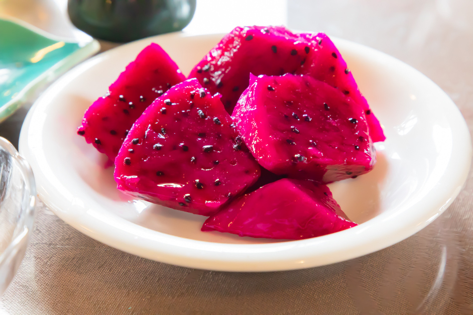 水果有紅龍果跟醃芭樂。