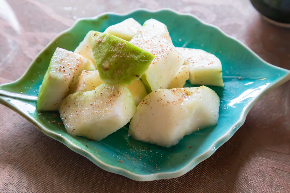 小菜水果先上,漬蘿蔔。