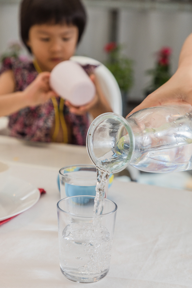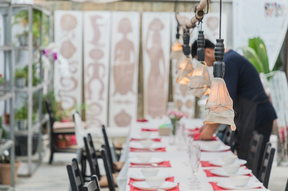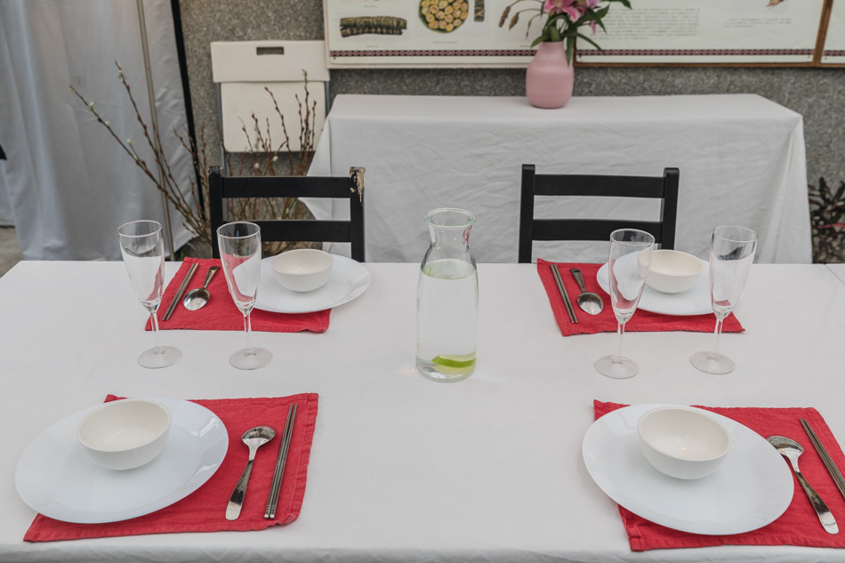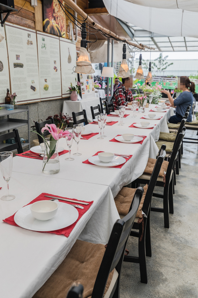 ▲用餐區擺上白餐巾、搭配桌上的代表魯凱族的百合花,既美麗,又有意義。