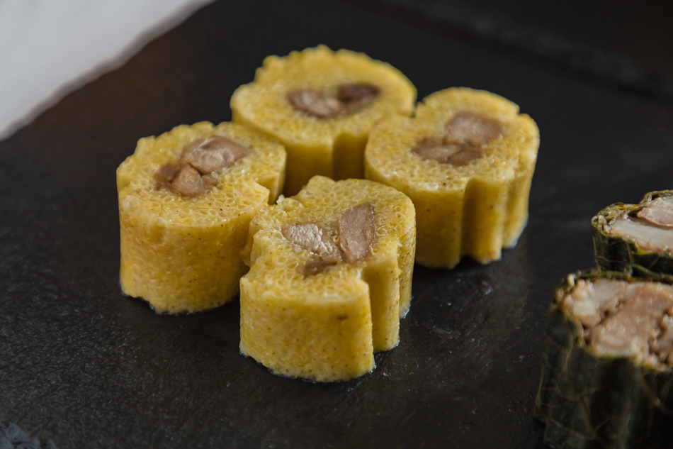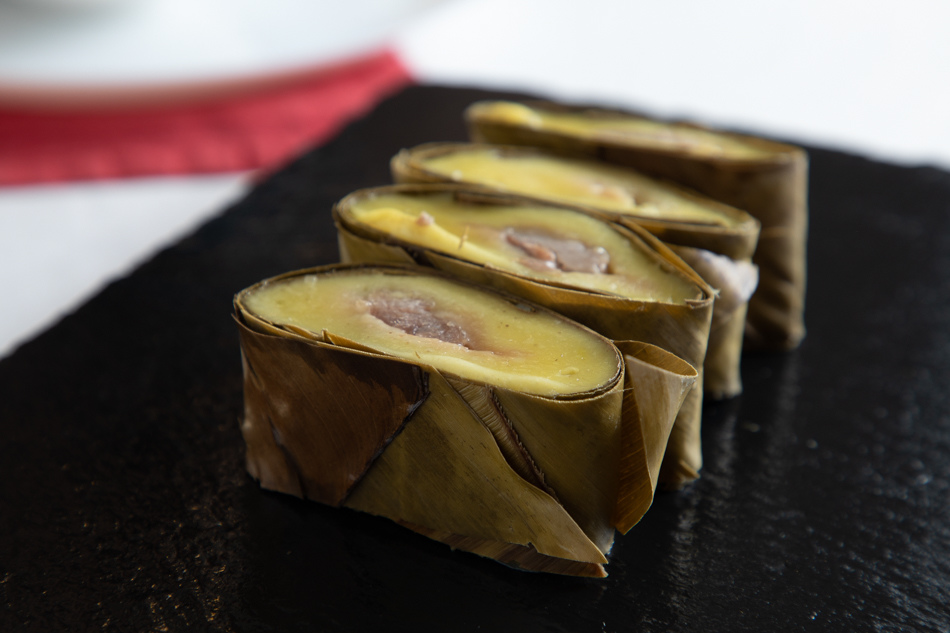 ▲前菜1 - 吉拿富。是原住民的粽子,外層是用月桃葉包覆蒸煮。