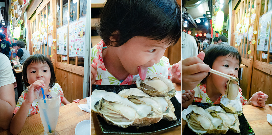 ▲接著陸續吃了大牡蠣、玉子燒跟烤雞翅。